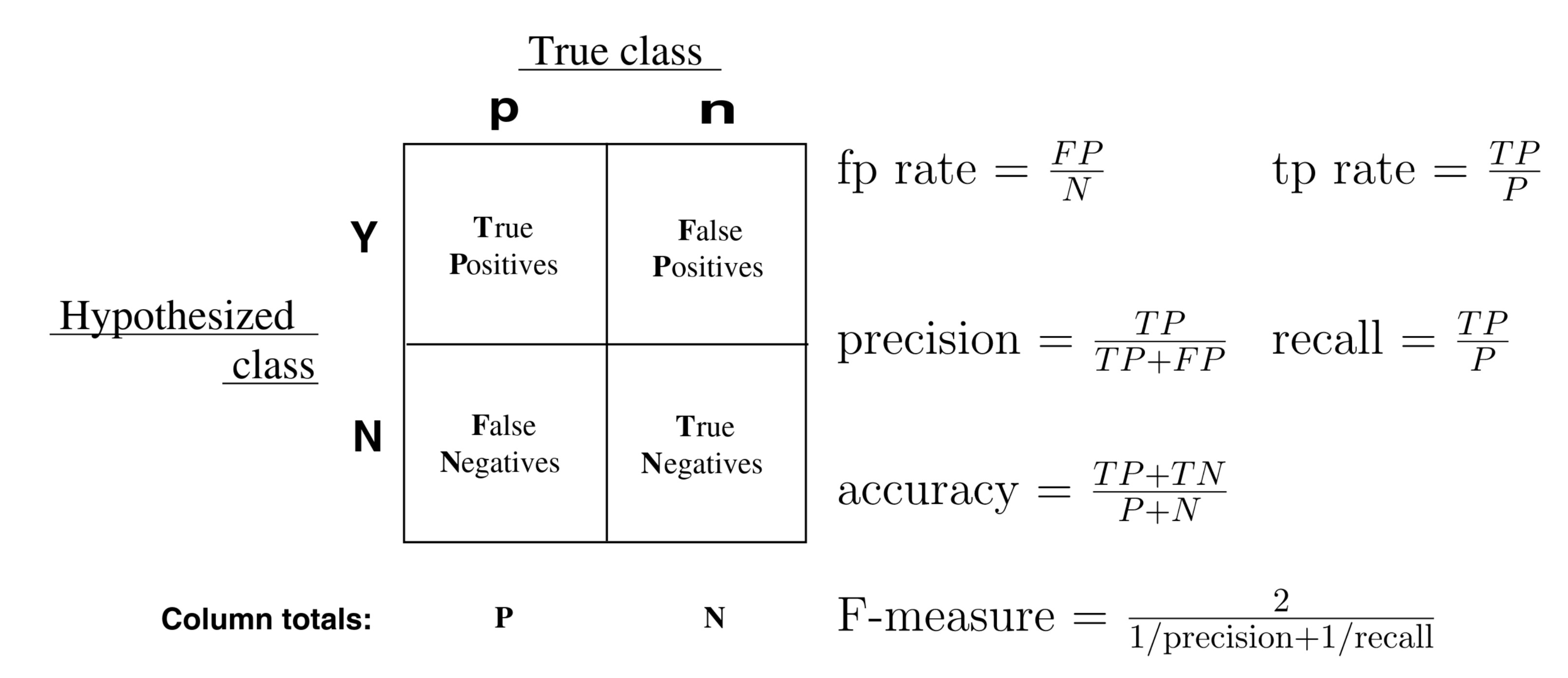 | predicted class k | \(n_{k1}\) | \(n_{k2}\) | … | \(n_{kk}\) |